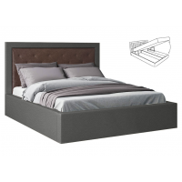 Сучасні меблі для спальні з серії Кароліна. Мягка спинка з красивим оздобленням. Ліжко можна доукомплектовувати підйомним механізмом. Оббивку ліжка можна обрати 4 варіанти кольори тканини, або кольори шкірзамірнника. Двоспальне Ліжко потрібно доукомплектовувати ламелями (основа під матрац) та матрацом. Ціна вказана за Ліжко без підйомного механізму.