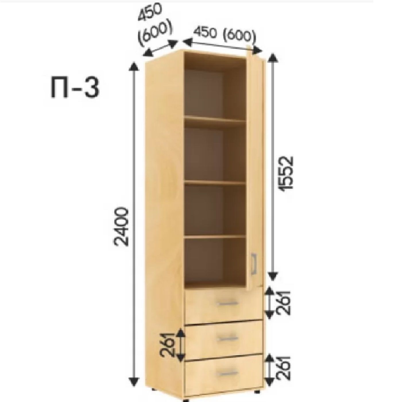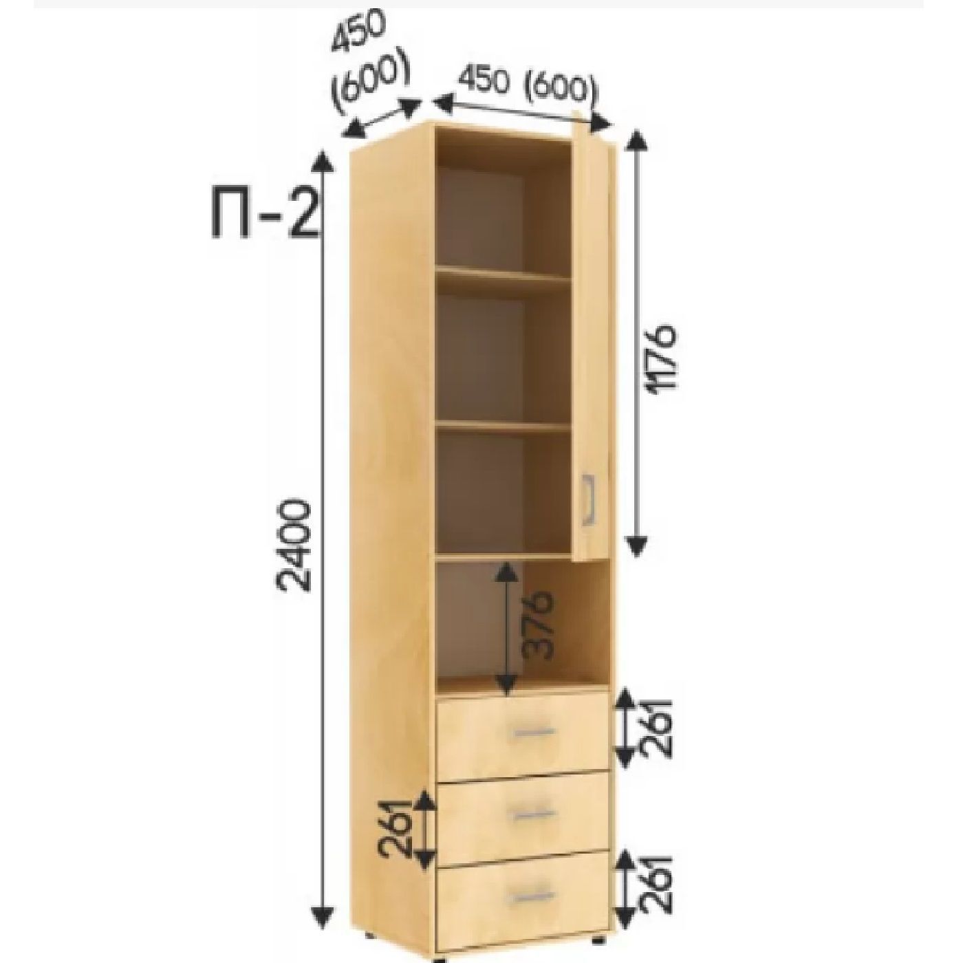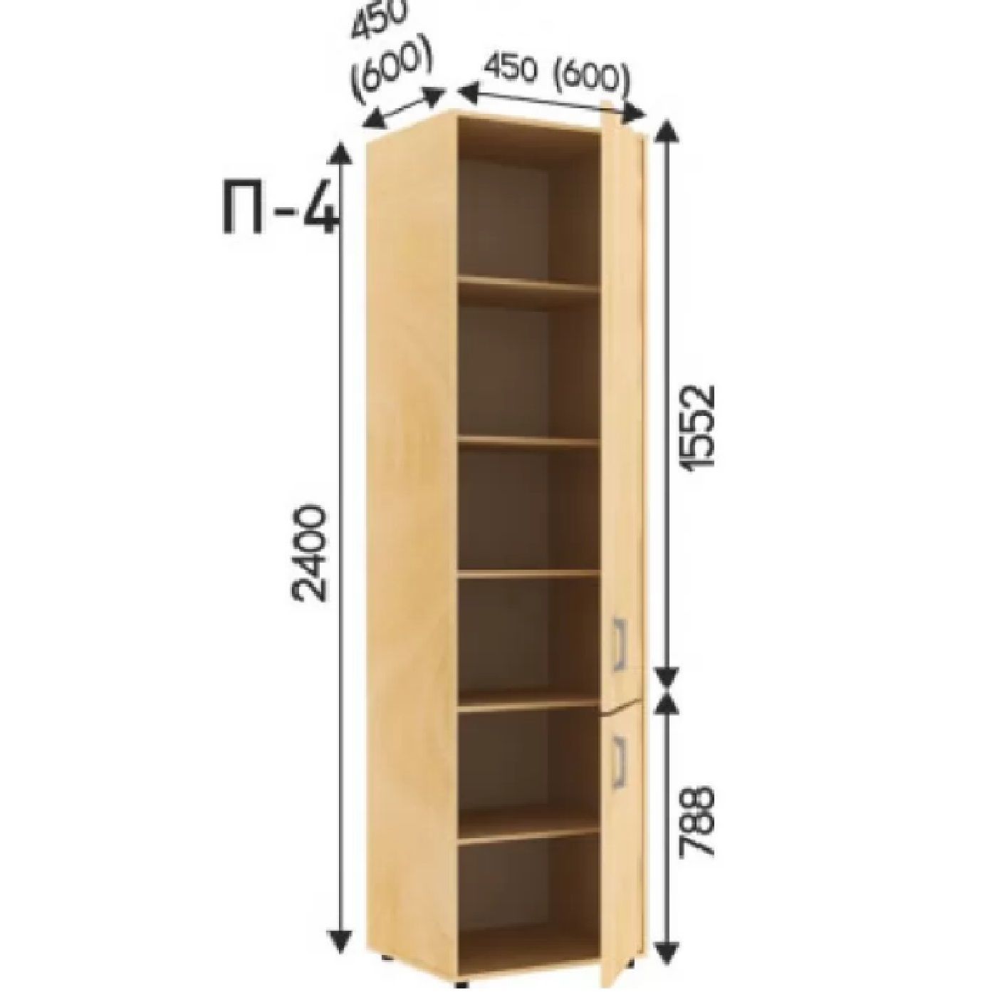 Виробник пропонує довжину шаф 1200/1400/1800/1800 мм, глибиною 600 мм, і висотою 2200 см або 2400 см, що дозволить вам підібрати відповідний розмір для вашої кімнати.